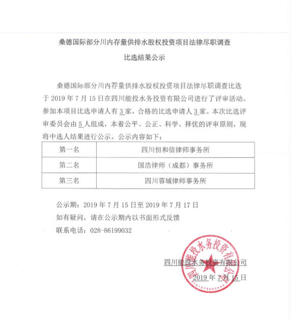 下一條:四川能投水務(wù)投資有限公司施工勞務(wù)分包、施工材料采購、設(shè)備采購、主要施工機具租賃項目招標代理服務(wù)機構(gòu)比選公告