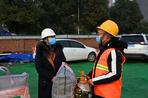 在黃堰河法治廣場(chǎng)施工段,錢汝靜與公司負(fù)責(zé)人進(jìn)行深入交流,聽取現(xiàn)場(chǎng)建設(shè)情況匯報(bào),開展了節(jié)前慰問工作。她要求,一是要以高度的責(zé)任感穩(wěn)步推進(jìn)防疫工作,持續(xù)確保整體隊(duì)伍0感染、0確診。二是要不斷強(qiáng)化員工安全生產(chǎn)宣傳教育,深挖細(xì)查安全隱患和不足,在安全文明施工方面狠下功夫,著力提升安全管理水平。三是精心組織,搶抓項(xiàng)目建設(shè)進(jìn)度;精細(xì)化施工,保障項(xiàng)目建設(shè)質(zhì)量。四是項(xiàng)目處于市區(qū),周邊人流密集,提高警惕,做好信訪維穩(wěn)工作。